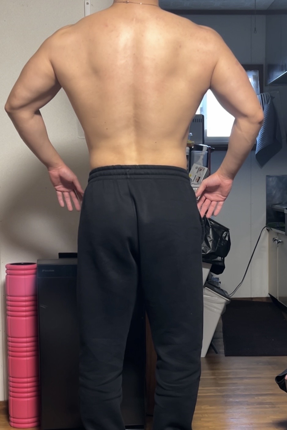 まだ腹筋がくっきりという段階ではありません。